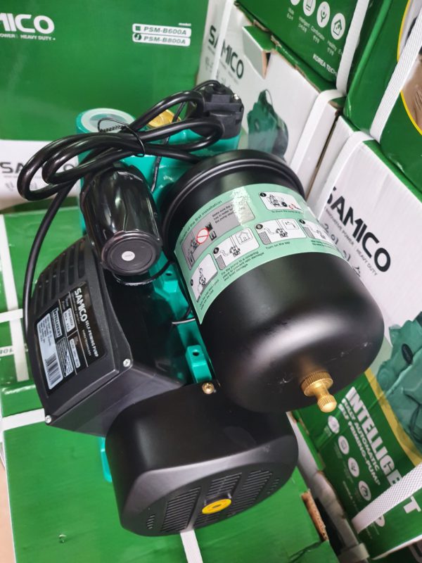 Máy bơm nước tăng áp Samico PSM-B600A tăng áp tự động Công nghệ Hàn Quốc là dòng bơm xuống rơ le điện tử không còn tiếng kêu tạch tạch được sản xuất theo công nghệ của Nhật Bản. Bơm tăng áp Samico PSM-B600A Thích hợp sử dụng trong hệ thống tăng áp cho máy nước nóng, hệ thống máy nước nóng năng lượng mặt trời, tăng áp cho gia đình, biệt thự, tăng áp máy giặt, vòi hoa sen, phòng tắm xông hơi, masage, chung cư mini…Máy bơm nước Samico PSM-B600A tăng áp được bảo hành chính hãng 1,5 năm tại Hà Nội
